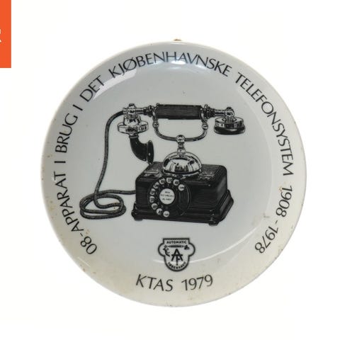 Denne porcelænstallerken har en diameter på Ø 19,5 cm og viser en illustration af en ældre svensk vægtelefon fra 1882, med teksten 'KTAS 1981'. Bagsiden har en tekst skrevet, der beskriver vægtelefonen som en 'Ældre Svensk' model, fremstillet af L.M. Ericsson & Co Mekanisk Værkstad, Stockholm i 1882 og anvendt af Lolland-Falsters Telefon-Aktieselskab. Tallerkenen har en snor til ophængning.