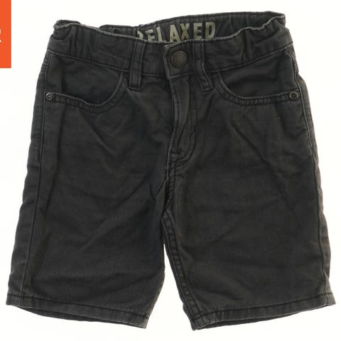 JeansShorts til børn i sort elastan bomuldsmateriale. Modellen har to forlommer og to baglommer med almindelig pasform. Der er en knaplukning fortil, og en elastisk bærestykke bagtil.