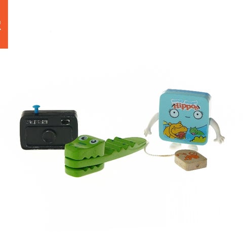 Denne legetøjsdiligence er lavet af plast og har en orange farve. Den har hjul, der kan rulle, og indeholder forskellige detaljer som US Mail og No.7 stickers. Der følger en lille figur med, som ser ud til at være en slange med hue. Designet kan være inspireret af western-stilen med sine vogndetaljer.