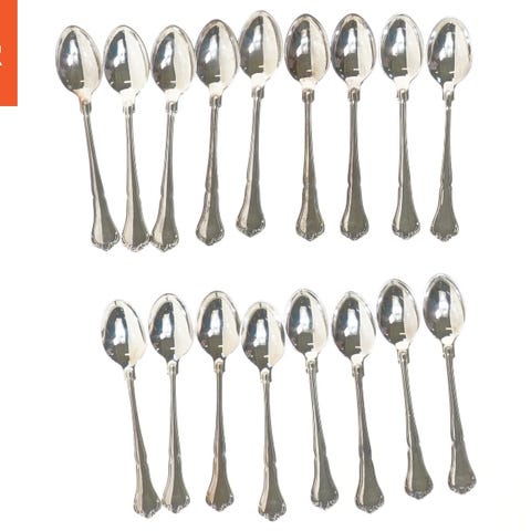 Dette er et sæt af to messing teskeer. Skeerne har en længde på 11 cm og har et unikt mønster langs skaftet. Skeens overflade viser noget patina og tegn på alder. Den nederste del af skeerne har et dekorativt design, der tilføjer til deres antikke charme. De ser ud til at være håndlavede og har detaljer, der afspejler godt håndværk.