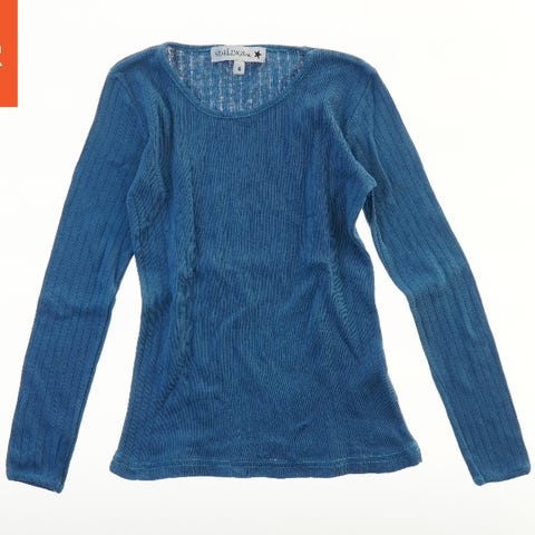 Bluse med lange ærmer i en blå farve. Den er fremstillet af et ribbet stof, hvilket giver den et struktureret udseende.
