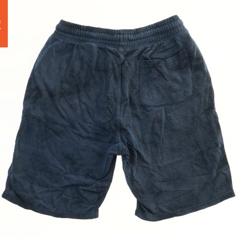 Disse shorts er blå og har en elastisk talje med grå snore. De har ingen synlige lommer og er lavet af et blødt materiale.