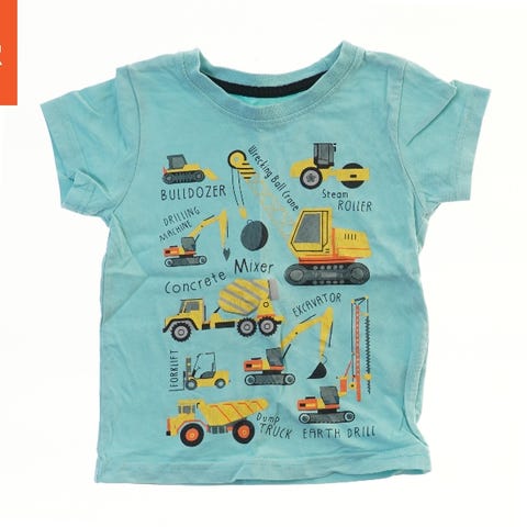 Børnesæt bestående af en langærmet trøje og bukser. Trøjen har et motiv med et gult gravkøretøj på forsiden, og bukserne er dekoreret med forskellige køretøjsmotiver i flere farver. Farven er overvejende mørkeblå.