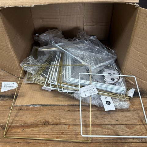 Lille parti metal triiangle og firkanter til garn, mm. Salg for advokat