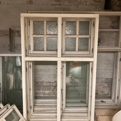 Vinduer som har stået i et orangeri i et 1,5 år.