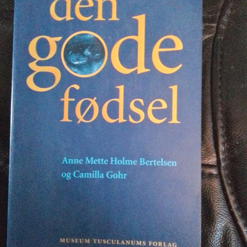 Bog med titlen 'Forløsning - fødsel med eller mod naturen'. Indeholder tekster og billeder relateret til emnet, herunder fotografier af menneskekroppe og skulpturer. Materiale: trykt papir.