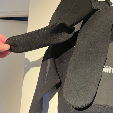Palm All Round Long John våddragt i sort og blå farve. Str m/l. Fremstillet i neoprenmateriale, designet til at give fleksibilitet og beskyttelse ved vandsport. Modellen er uden ærmer og har lynlås foran. Brugt til at ro kajak. Der medfølger også et par Neopren bukser.