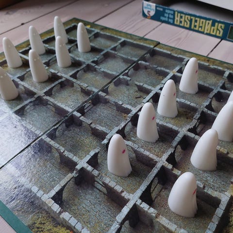 Spøgelsesspillet, Familiespil, brætspil, Komplet og i flot stand. En enkelt spøgelses-spillebrik er dog udskiftet med anden hvid spillebrik