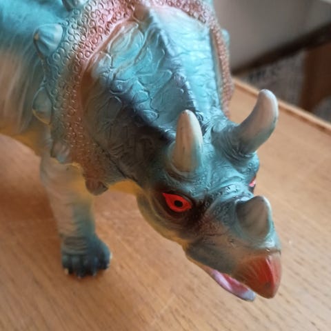 Dino Ranch Triceratops dinosaur med indhegning, købt hos BR. Det ser ikke ud som om man kan købe så meget Dino Ranch i butikkerne længere. Se evt. mine andre Dino Ranch dinosaur annoncer.