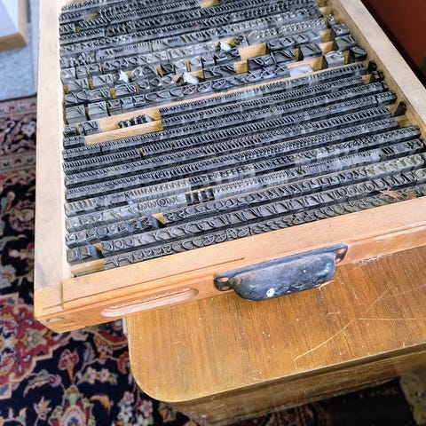 Vintage sætterkasser brugt af typografer i gamle dage til bogstaver. Flere forskellige størrelser. Små figur kan tilkøbes.