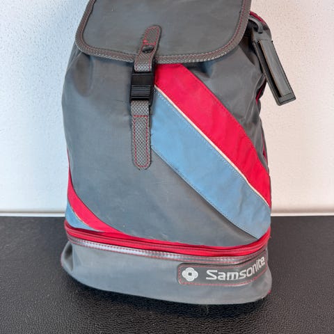 Denne rygsæk er designet specielt til børn og har form som en krokodille. Hovedfarven er grøn med en lysere gul nuance på forsiden. Tasken har justerbare skulderstropper for komfortabel brug. Lukkemekanismen er i form af en lynlås, og der er dekorative elementer, der ligner krokodille ansigt og tænder. Størrelsen på tasken er 27x24 cm. Den er velegnet til mindre børn og kan bruges til opbevaring af småting. Rygsækken er mærket med 'Sammies by Samsonite'.