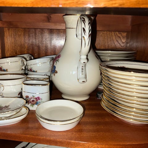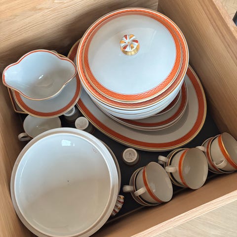 Royal Copenhagen porcelænssæt med blomsterdekor. Sættet indeholder tallerkener, kopper, kander, sukkerskål og flødekande. Porcelænet er dekoreret med fine blomstermotiver og har en klassisk, elegant stil.