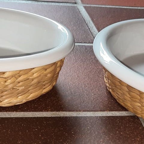 Flettet kurv med keramisk fad (str. 37,5x26 cm)