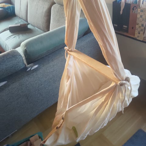 Min søn har mest sovet på mig (🫠), så slyngevuggen er brugt minimalt og står stadig som ny. Købt i 2020, kvittering haves og kan medfølge.