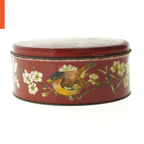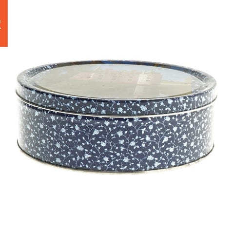 Blomstret Vintage Rund metal opbevaringsdåse (str. Ø. 20 cm)