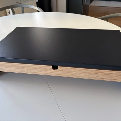 Til at stille pc eller skrærm på ovenpå. Denne enhed består af en hvid hylde med en integreret skuffe lavet af naturligt træ. Hylden har en minimalistisk design og passer perfekt til opbevaring af diverse genstande. Skuffen har flere rum, der gør det nemt at organisere forskellige ting, som papirarbejde eller elektroniske tilbehør. Hylden kan bruges i hjemmet eller kontoret og bringer en stilfuld opbevaringsløsning til ethvert rum.