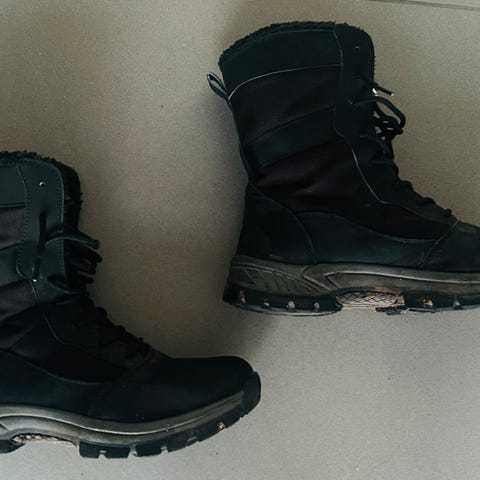 Vinterstøvler med kort skaft og pelskant. De er sorte og har en lynlås på siden for nem påtagning. Støvlerne har en solid sål med godt greb, velegnet til vinterforhold. Størrelse 41.