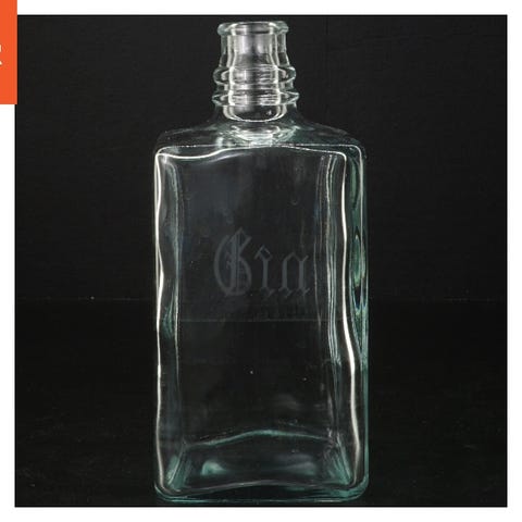 Genanvendelig vandflaske lavet af klart glas med en skruekapsel af rustfrit stål. Flasken har en slank, cylindrisk form og er udstyret med en udtagelig silikone forseglingsring for at forhindre lækage.