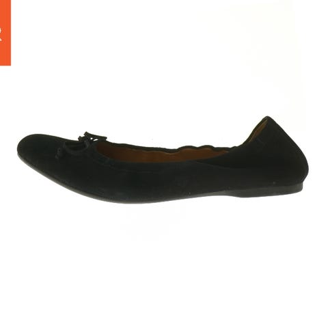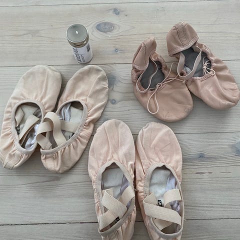 Dette er et par balletsko med en sort base prydet med farvede prikker over hele overfladen. Skoene har en gul bund og elastisk kant for nem tilpasning. Inde i skoene er der mønstrede indlægssåler, hvilket giver komfort til brugeren. Størrelsen på skoene er 19,5 cm.