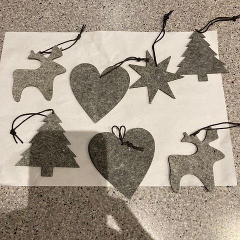 Sæt med tre juletræspynt formet som øldåser. Dekorationerne er i forskellige farver: orange, blå og grøn, og kommer i en gaveæske. De er 11 cm høje og designet til indendørs brug som juledekoration. Tags: julepynt, øldåser