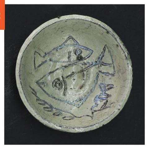 Tags: keramik, skål, grøn, fiskemotiv, servering