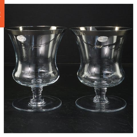 Glassene har en dekorativ sølvkant foroven, hvilket giver dem et elegant udseende. De er ideelle til servering af drikkevarer eller som dekorative stykker. Størrelsen på hvert glas er Ø 6,5x7 cm.