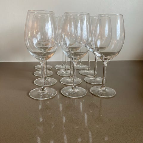 Sættet indeholder fire vinglas med en rund form. De har en størrelse på Ø 8,5 cm i diameter og en højde på 20,5 cm. Glassene er gennemsigtige og designet til at servere forskellige typer vin.