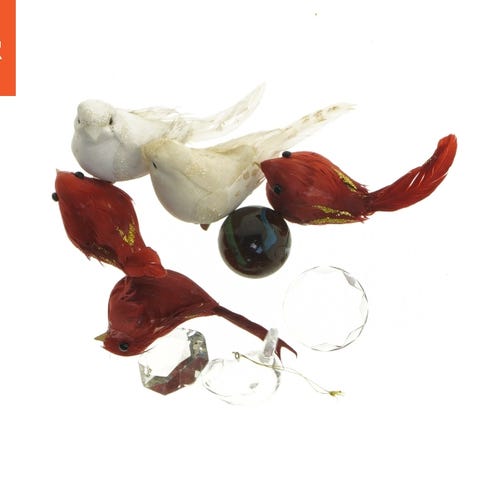 Disse dekorative fugle er lavet med fjer og har en længde på 9 cm. De kommer i forskellige nuancer af brunt og hvidt. Fuglene har fastgørelseswire under sig, ideelle til dekoration på grene eller andre overflader.