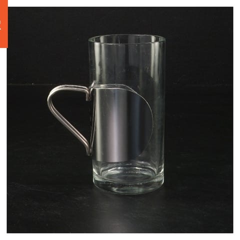 Sæt af fem glas, hver med en dekorativ metalholder. Hver holder har et håndtag og står på små kuglefødder. Glasset er aftageligt fra metalholderen. Størrelsen er Ø 6,5x9 cm.