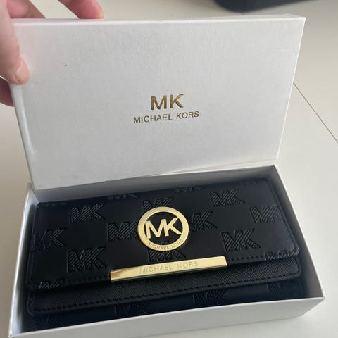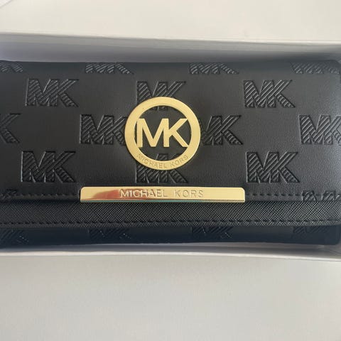 Elegant og rummelig Michael Kors pung / taske i sort saffiano-præget materiale med guldfarvet logo og hardware. Klassisk zip-around model med aftagelig håndledsrem – kan bruges både som pung og lille clutch.