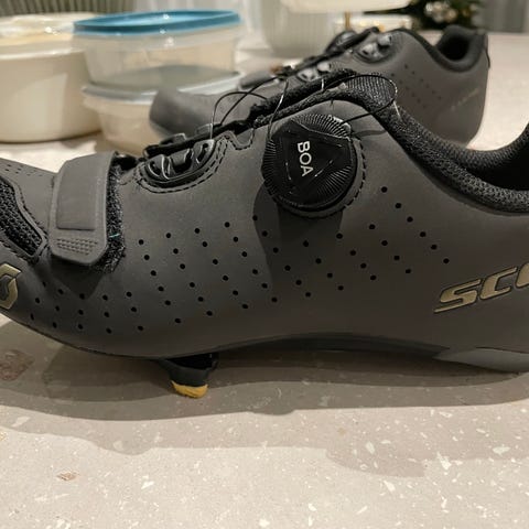 Scott cykelsko str 45, Shimano klikpedaler og Endura overtrækssko.