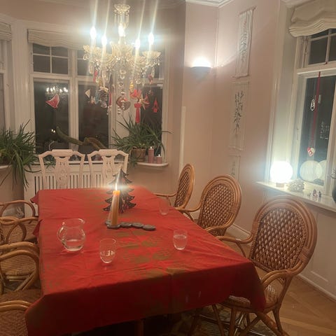Utroligt smukt bord med fine snedker detaljer i bordpladen. Her er der sat fisk i alle knaster som der ses på sidste billede 🌟