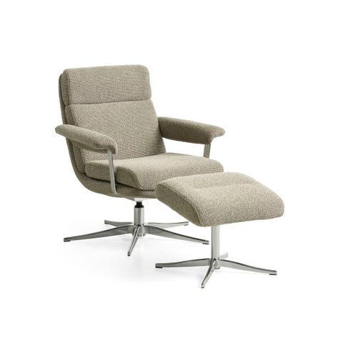 Meget moderne lænestol som kan købes med eller uden skammel. Du kan vælge mellem en flot grøn mikrofiberstof eller en flot lys beige mikrofiberstof og med enten sort metalstel eller børstet stål. Lænestolen kan lænes tilbage i en afslappet siddekomfort.