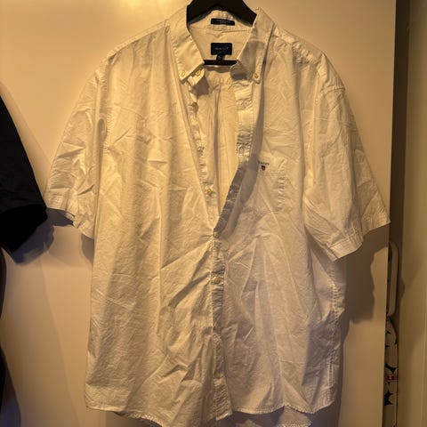 GANT Broadcloth skjorte til herrer i størrelse 3XL. Skjorten er sort og lavet af bomuld. Den har korte ærmer og knaplukning foran. Materialet er velegnet til almindelig brug.