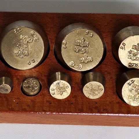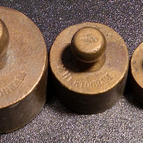 Lodder, Messing, 100 år gl., Vægt lodder fra år 1886 til 1929. Sælges samlet pris 250 kroner.