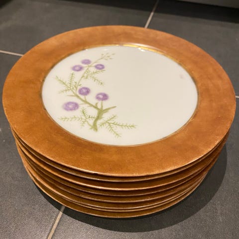 Pæn, brugt stand. Almindelige lette brugsspor og mindre slid på guldkant kan forekomme, men ingen skår eller revner.