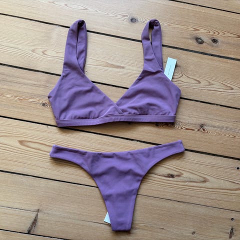 Toppen er uden bøjle og bindes om både ryg og nakke og er dermed justerbar. Har skåle med vattering der kan tages ud. SÅ flot og stilfuld!
