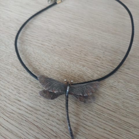 Gulsmed vedhæng i sterlingsølv, i lædersnor