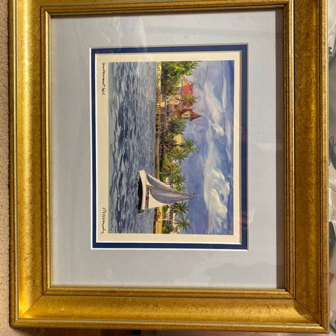Billede triptykon med sejlbåd og havmotiv