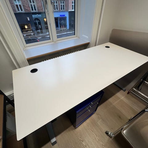 Hæve/sænke-skrivebord fra IKEA sælges til 1000 kr. Bordet er yderst sparsomt brugt og eneste brugsspor er et lille hak i bordpladen, som man dog nærmest ikke lægger mærke til.