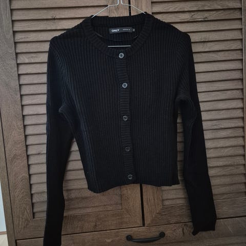 Smuk råhvid ONLY cardigan str M, lukkes med knapper, pæn riflet materiale.