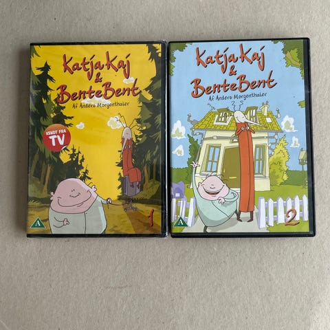Katja Kaj og Bente Bent DVD-sæt med to DVD'er. Indeholder animationer med karaktererne Katja Kaj og Bente Bent. Sproget er dansk, og produktet er egnet til børn og familier som underholdning.