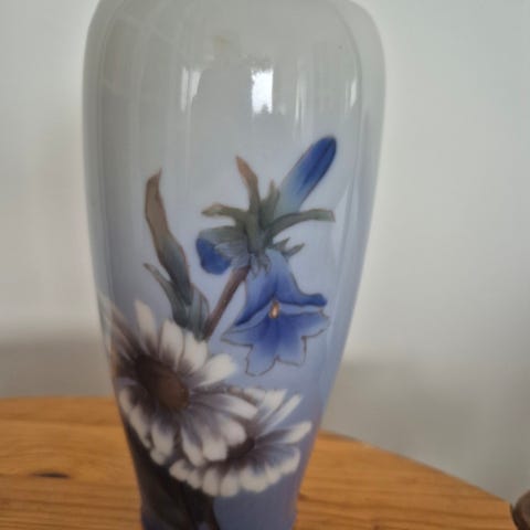 Mørkeblå vase med blomster, Royal Copenhagen, 1. sort. H. 16cm. Ingen skader.
