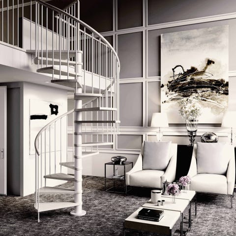 Se flere farver, højder og diameter på vores webshop: https://altaner.dk/vare/graa-spindeltrappe-f20-staal/