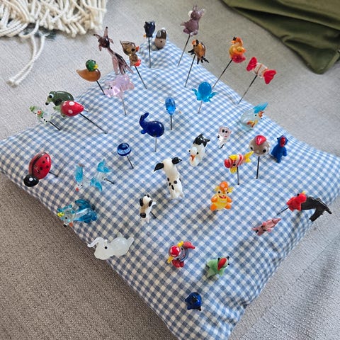 29 stk smukke gamle håndlavet glas nipsenåle i rigtig flot stand samlet mp 600kr afhentes i 8570 Trustrup eller sendes for 45kr