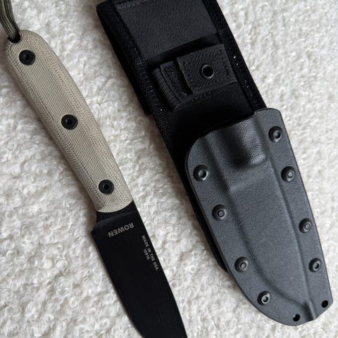 Denne kniv er kun lavet i et lille oplag, og fåes ikke mere. Det er virkelig en one tool option da den er rimelig let, og virkelig slicey. Jeg har en magen til som jeg har tæsket løs på, og på trods af den delikate hollow grind, er denne kniv sindssygt robust.