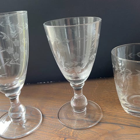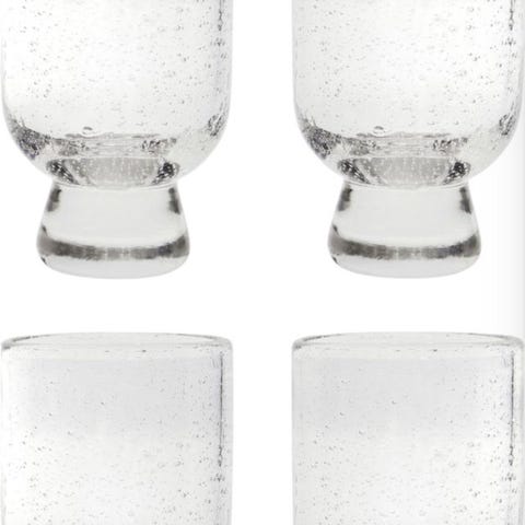 7 stk House Doctor hvidvinglas med en kombination af klart glas og grøn farve. Designet med en dekorativ stil på glasset og en robust fod.