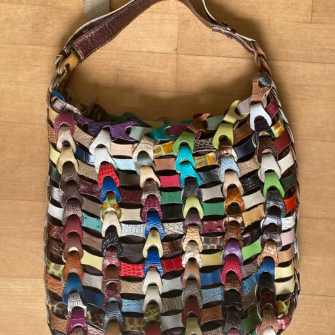 Unik og karakterfuld Octopus skuldertaske udført i flettet/lænket læder i mange forskellige farver og strukturer. Tasken har et markant håndlavet udtryk og skiller sig tydeligt ud fra mere almindelige lædertasker.