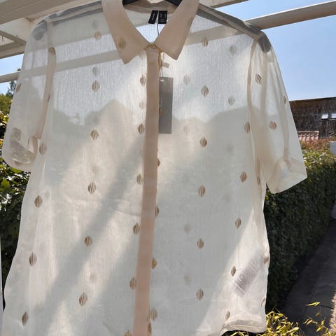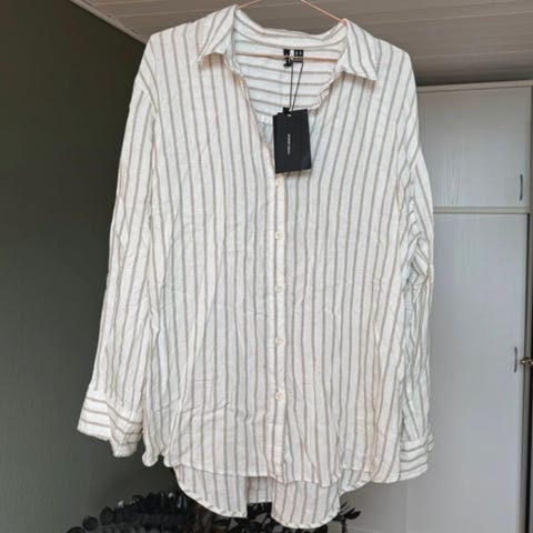 Vero Moda Vhmelaney Queeny skjorte til kvinder i størrelse M. Skjorten er beige og lavet af viskosemateriale.