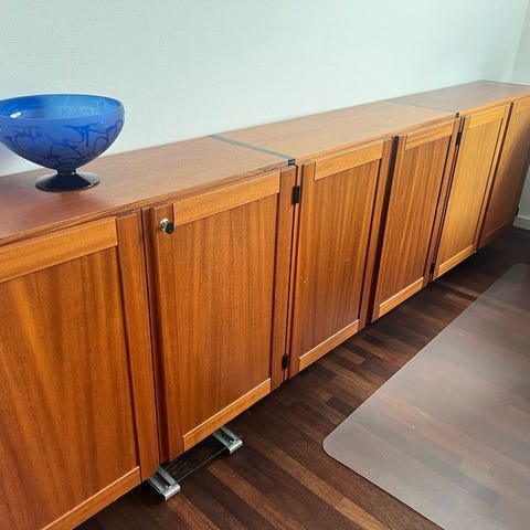 Godt og rummeligt reolsystem i mørkt træ. Afhentes i Kastrup senest 23/1